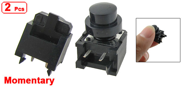 Product Name Momentary Tactile Switch Action Type Momentary Switch Size(Include Cap) 12 x 12 x 12mm/ 0.47" x 0.47" x 0.47" (L*W*H) Dimension 20 x 13 x 18mm / 0.79" x 0.51" x 0.71" (L*W*H) Button Diameter 8mm / 0.31" Pin Pitch 5mm/ 0.2" Pin Length 4mm / 0.16" Material Plastic, Metal, Electric Parts Main Color Black Net Weight 4g Package Content 2 x Momentary Tactile Switch - Reviews