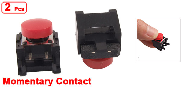 Product Name Tact Switch Contact Type Momentary Contact Switch Size(Include Cap) 12 x 12 x 8mm/0.47" x 0.47" x 0.31'' (L*W*H) Dimension 17 x 13 x 9mm/ 0.67" x 0.51" x 0.35" (L*W*H) Button Size 9 x 3mm/ 0.35" x 0.31"(D*H) Pin Pitch 5mm/ 0.19" Pin Length 4mm/ 0.16" Material Plastic, Metal, Electric Parts Color Black, Silver Tone, Red Net Weight 3g Package Content 2 Pcs x Tact Switches - Reviews