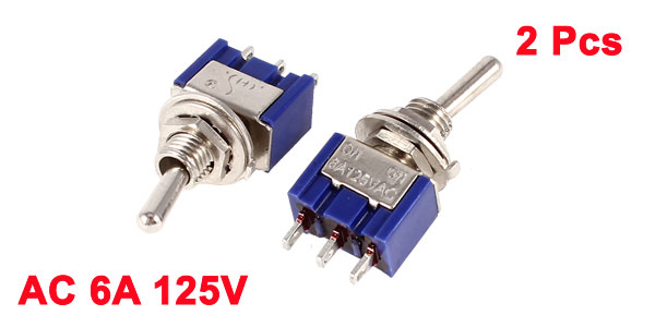 Product Name Toggle Switch Model MTS-102 Voltage / Current AC 125V 6A Type SPDT, ON-ON, 3Pin Size 30 x 12 x 13mm / 1.2" x 0.5" x 0.52"(L*W*H) Color Blue, Silver Tone Weight 10g Package Content 2 x Toggle Switches - Reviews