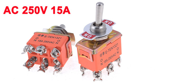 Product Name Toggle Switch Rating AC 250V 15A Pin Number 6 Pins Position 2 Position(On/Off) Type DPDT(Latching) Thread Diameter 11mm/ 0.4" Total Size(Approx.) 5.5 x 3 x 1.8cm / 2.2" x 1.2" x 0.7"(L*W*T) Material Plastic & Metal Color Orange & Silver Tone Weight 72g Package Content 2 x Toggle Switch - Reviews
