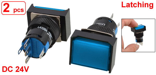 2 Pcs Panel Mount Blue Lamp Latching Rectangle Push Button Switch DC 24V