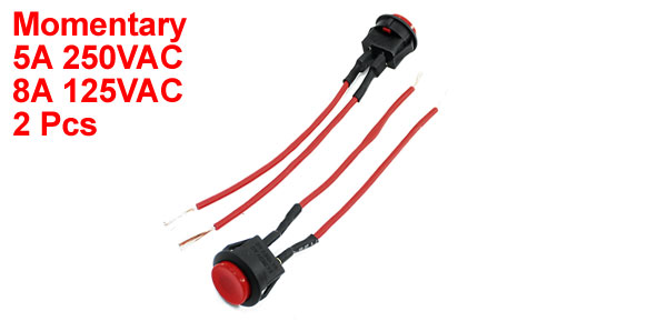 2 Pcs Panel Mount Wired Momentary SPST Car Button Switch 5A 250VAC 8A 125VAC