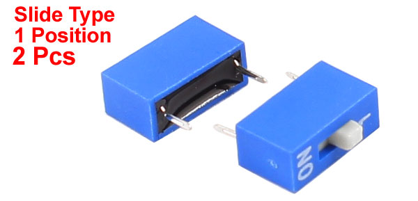 Product Name DIP Switch Type Slide Type Poles 1 Position 2Pin Pitch 2.54mm Non-Switching Rating 100mA DC 50V Switching Rating 100mA DC 24V Dimension 10 x 5 x 4cm/ 0.4" x 0.2" x 0.16"(L*W*H) Material Plastic, Electric Parts Main Color Blue, White, Silver Tone Weight 1g Package Content 2 Pcs x DIP Switches - Reviews