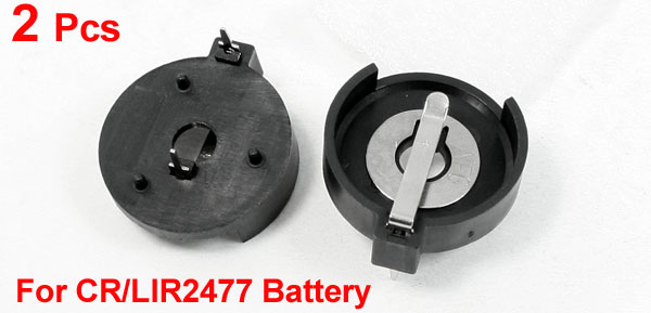 2 Pcs Plug-in 2Pin CR/LIR2477 Button Battery Holder Socket Black