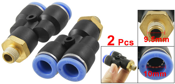2 Pcs Pneumatic 1/8" Thread 10mm Push In Y Shape Quick Connector