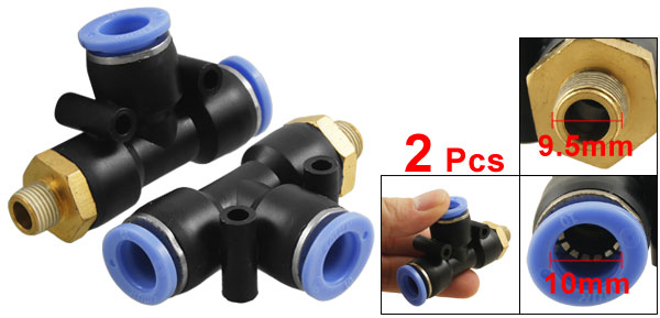 Product Name Pneumatic Quick Fittings Type T Connector One Touch Connector 10mm/ 0.39" Male Thread Connector 9.5mm/ 0.37" Thread Size 1/8" Material Plastic, Metal Dimension (Approx) 6.2 x 3.6 x 1.8cm/ 2.44" x 1.41" x 0.71" (L*W*T) Color Black, Blue Weight 65g Package Content 2 x Pneumatic Quick Fittings - Reviews