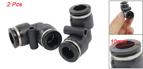 Product Name Pneumatic Quick Fittings Type 10mm to 10mm ( Right Angle) Material Plastic One Touch End Diameter 10mm/ 0.39" Dimension (Approx) 3.5 x 3.5 x 1.7cm/ 1.4" x 1.4" x 0.6" (L*W*H) Color Black, Silver Tone Weight 28g Package Content 2 x Pneumatic Quick Fittings - Reviews