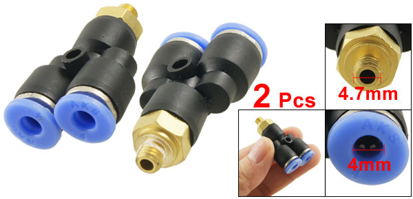 2 Pcs Pneumatic 4.7mm Thread 4mm Push In Y Shape Quick Connectors