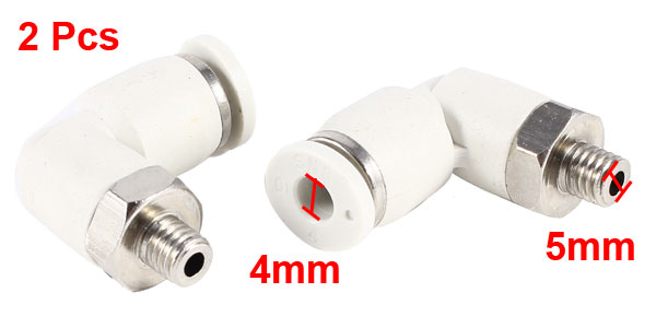 2 Pcs Pneumatic 4mm to 5mm Male Thread One Touch Elbow Quick Fittings