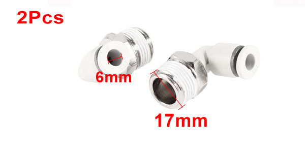 Product Name Quick Fittings Design L Shaped (90 Degree Elbow) Material Plastic, Metal Thread Size 3/8" PT Thread Diameter 17mm Tube Diameter 6mm Total Size (Approx) 31 x 24 x 15mm/ 1.1" x 0.9" x 0.6" (L*W*H) Color White,Silver Tone Weight 45g Package Content 2 x Quick Fittings - Reviews