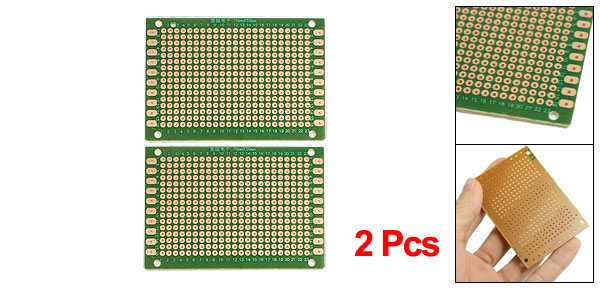 Product Name Universal PCB Board Hole Size(Approx) 1mm/ 0.039" Hole Pitch(Approx) 2.73mm/ 0.107" Board Size(Approx) 7 x 5cm/ 2.8" x 2"(L*W) Thickness(Approx) 1.5mm/ 0.059" Material FR-4 Main Color Green Weight 12g Package Content 2 Pcs x Universal PCB Board - Reviews