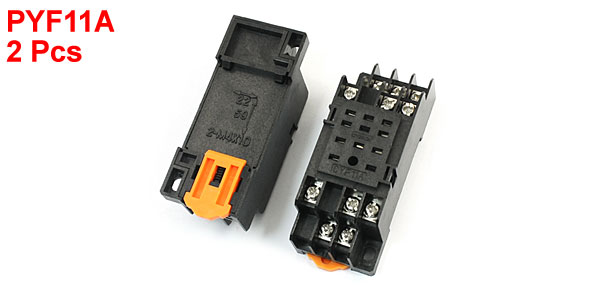 2 Pcs PYF11A 11-Pin 35mm DIN Rail Mounting Power Relay Socket Base