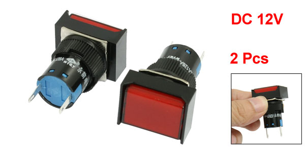 2 Pcs Rectangular Red Cap Indicator Light Accident Signal Lamp DC 12V