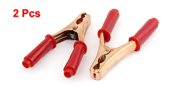 2 Pcs Red Gold Tone Plastic Coated Car Battery Alligator Clip Clamp