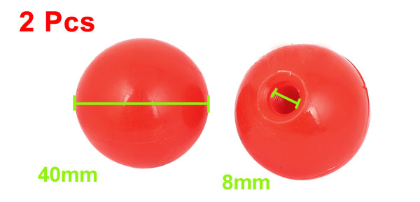 2 Pcs Red Plastic 40mm Dia 8mm Female Thread Ball Handling Knob