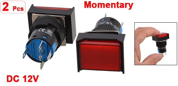 2 Pcs Red Rectangle Cap DC 12V Light SPDT 5 Pins Push Button Switch