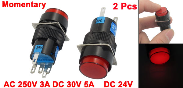 2 Pcs Red Sign Round Momentary Push Button Switch NO NC 5P 5 Pin 24V DC Lamp