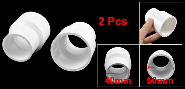 2 Pcs Replacement 40mm to 50mm PVC Straight Pipe Connector White