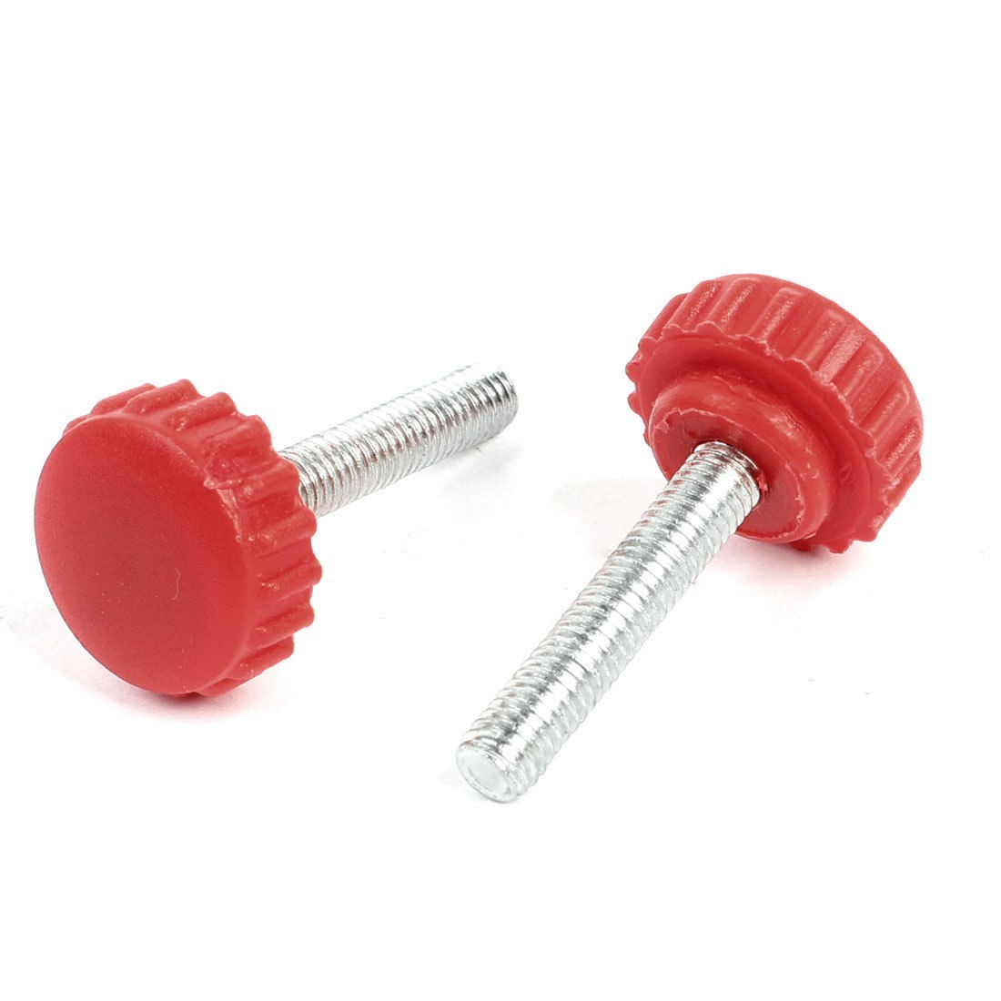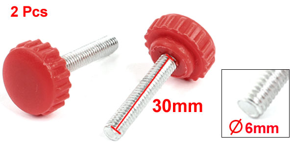 Product Name Clamping Knob Type Screw On Head Diameter 20mm / 0.79" Thread Length 30mm / 1.18" Thread Diameter 6mm / 0.24" Total Height 42mm / 1.65" Material Metal, Plastic Color Silver Tone, Red Weight 19g Package Content 2 x Clamping Knob - Reviews