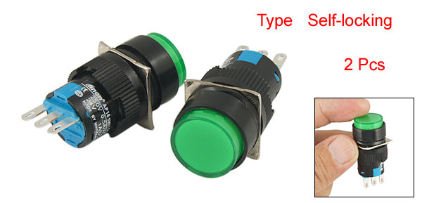 2 Pcs Round Green Cap Self-locking Push Button Switch