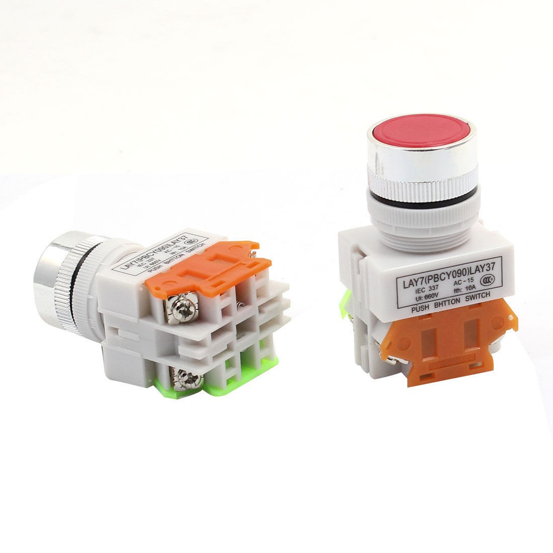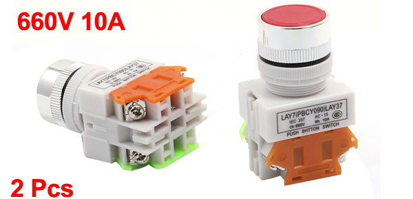 Product Name Push Button Switch Action Type Momentary Contact Type 1 NO, 1 NC Poles DPST Ui 660V Ith 10A Terminals Quanlity 4 Pins Button Diameter 23mm/ 0.9" Size 35 x 30 x 62mm/ 1.5" x 1.1" x 2.4" (L*W*H) Cap Color Red Material Plastic, Metal Color White Weight 70g Package Content 2 x Push Button Switch  - Reviews
