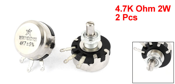 2 Pcs Round Shaft Rotary Taper Single Carbon Potentiometer 4.7K Ohm 2W WX110 010