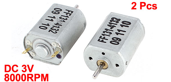 Product Name Micro Motor Rated Voltage DC 3V No-load Speed 8000RPM Shaft Dia 2mm / 0.078" Body Size 28 x 20 x 15mm / 1.1" x 0.8" x 0.59" (L*W*H) Total Length 42mm / 1.7" Main Color Silver Tone Material Metal, Plastic Weight 49g Package 2 x Micro Motors - Reviews