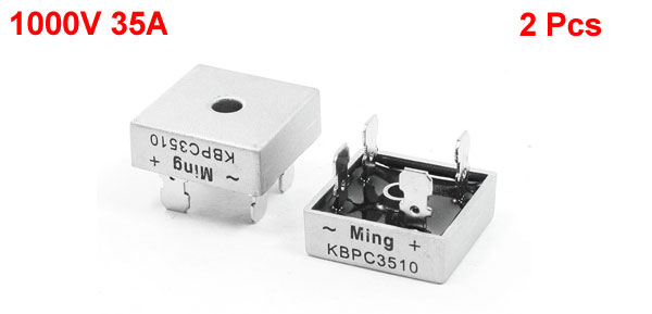 Product Name Bridge Rectifier Voltage 1000V Current 35A Dimension 2.9 x 2.9 x 1cm/1.14" x 1.14" x 0.4"(L*W*H) Pin Length 1.1cm/0.43" Material Ceramic, Metal Color Black, Silver Tone Net Weight 35g Package Content 2 x Bridge Rectifier - Reviews