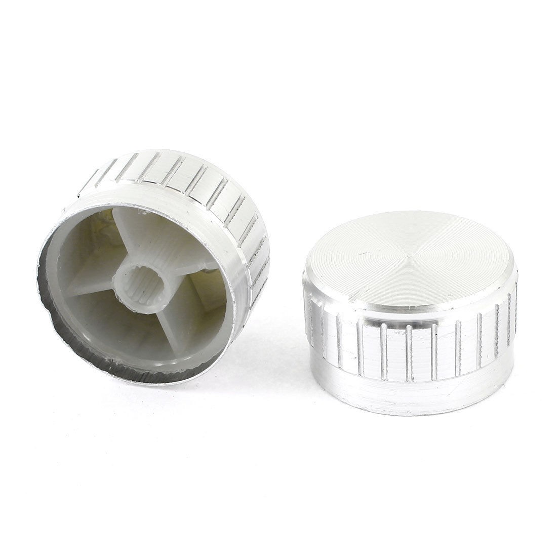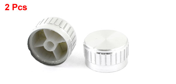 2 Pcs Silver Tone Volume Control Aluminum Potentiometer Knobs Caps 30mm x 17mm