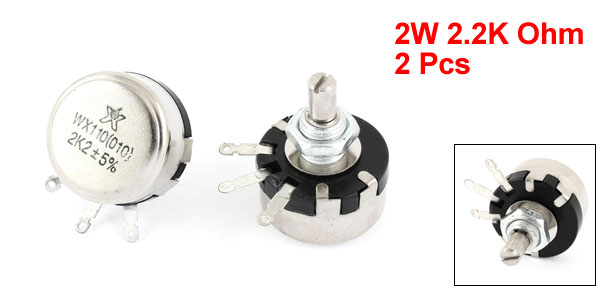2 Pcs Single Turn Rotary Taper Carbon Potentiometer 2W 2.2K Ohm WTH110 010