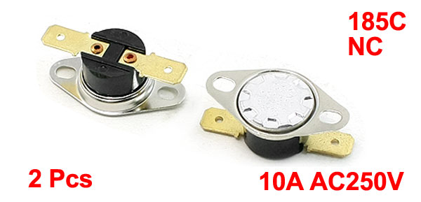 2 Pcs Soldered 185C NC.Temperature Controller Plastic Thermostat 10A AC250V