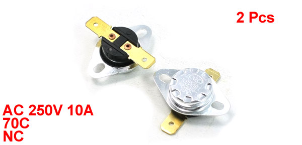 2 Pcs Soldered 70C NC.Temperature Controller Plastic Thermostat 10A AC250V