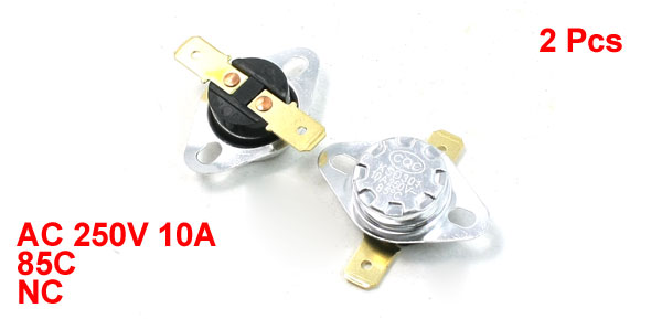 2 Pcs Soldered 85C NC.Temperature Control Plastic Thermostat Switch 10A AC250V