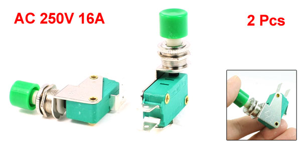 Button Diameter 13mm/0.5" Total Size 41 x 11 x 51mm/ 1.6" x 0.4" x 2" (L*W*H) Fixing Hole Diameter 2.5mm/0.1" Material Plastic, Metal Main Color Green, Silver Tone Net Weight 38g Package Content 2 x Micro Switch - Reviews