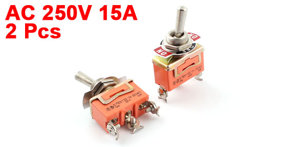 2 Pcs SPDT ON/OFF/ON Orange Metal Toggle Switch AC 250V 15A New