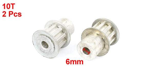 Product Name Timing Pulley Type XL Tooth Number 10 Pitch 6mm / 0.24" Bore Diameter 6mm / 0.24" Fit Belt Width 11 mm / 0.43" Overall Size 19 x 25 mm / 0.75" x 1" (D*H) Material Stainless Steel Color Silver Tone Weight 23g Package Content 2 x Timing Pulley - Reviews