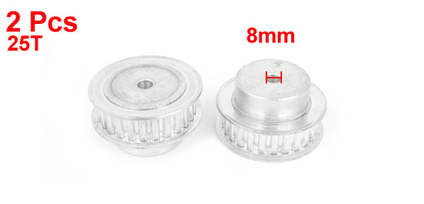 Product Name Timing Pulley Type XL Tooth Number 25 Pitch 6mm / 0.24" Bore Diameter 8mm / 0.31" Fit Belt Width 11 mm / 0.43" Overall Size 45 x 25 mm / 1.8" x 1" (D*H) Material Stainless Steel Color Silver Tone Weight 153g Package Content 2 x Timing Pulley - Reviews