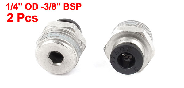 Product Name Push In Fitting Male Thread Diameter 16.7mm / 3/8" BSP Fit Tube OD 6mm / 1/4" Overall Size 18 x 18mm / 0.7" x 0.7" (L*Max.D) Color Silver Tone, Black Material Metal, Plastic Net Weight 36g Package Content 2 x Push In Fitting - Reviews