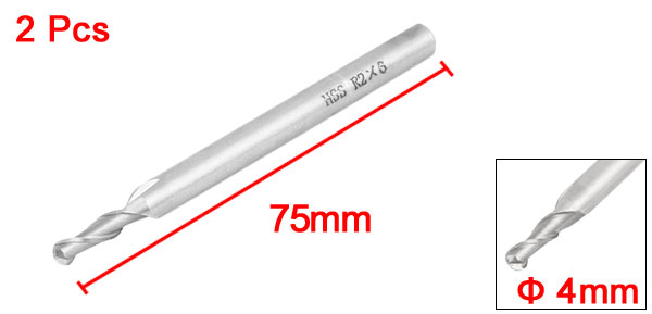 2 Pcs Straight Shank 2 Flutes HSS-AL End Mill Cutter Milling Tool 4mm x 6mm