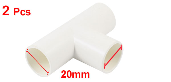 2 Pcs T Type 3 Way White PVC 20mm Inner Dia Wire Pipe Fitting Connector