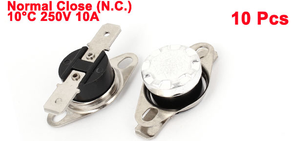 Product Name Temperature Switch Thermostat Model No. KSD301 Action Type Normal Close (N.C.) Action Temperature 110°C Voltage 250V 10A Size (Each) 3.5 x 1.2cm / 1.4" x 0.5" (L*H) Mounting Hole Dia 2mm/0.08" Terminal Width 5mm/0.2" Material Metal, Plastic Color Black, Silver Tone Weight 47g Package Content 10 x Temperature Switch Thermostat - Reviews