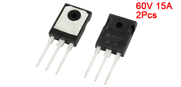 Product Name Power Transistor Part Number TIP2955 Collector-Emitter Voltage(Vceo) 60V Collector Current(Ic) 15A Power 90W Package TO-247 Material Metal Total Size 4 x 1.6x 0.5cm/1.6" x 0.6" x 0.2"(L*W*T) Hole Diameter 3.5mm/0.14" Pin Length 19mm/0.7" Color Silver Tone, Black Net Weight 13g Package Content 2 x Power Transistor - Reviews