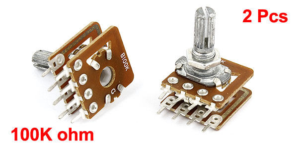 Product Name Carbon Film Potentiometer Resistance Value 100K ohm Adjustment Type Top Adjustment Type Linear Dual(Type B) Features Knurled Shaft Voltage DC 220V Shaft Diameter 6mm / 0.24" Shaft Length 9mm / 0.35" Mounting Thread Diameter 7mm / 0.28" Base Height 9mm / 0.35" Base Diameter 17mm / 0.7" Material Metal, Electronic Parts,Carbon Film Weight 20g Package 2 x Carbon Film Potentiometer - Reviews