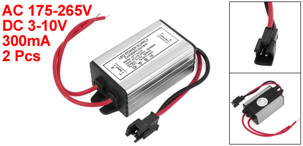Product Name LED Power Driver Material Plastic, Metal Input AC 175-265V 50/60hz Output DC 3-10V 300mA Power 1-3x1W Connector 2 Pin Size 5 x 3 x 2mm / 2" x 1.2" x 0.08"(L*W*H) Wire Length 10cm / 4" Color Silver Tone Weight 121g Package Content 2 x LED Power Driver - Reviews