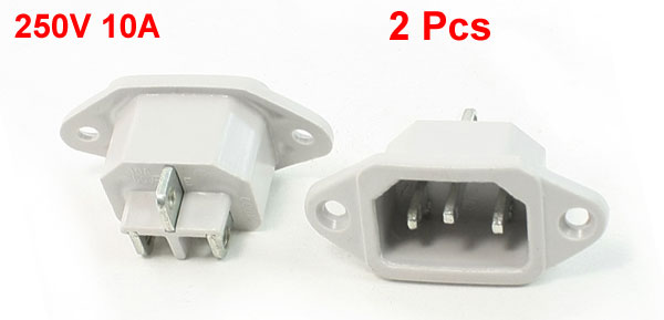 2 Pcs White Electric Cooker C14 3 Pin Plug Supply Power Adapter AC 10A 250V