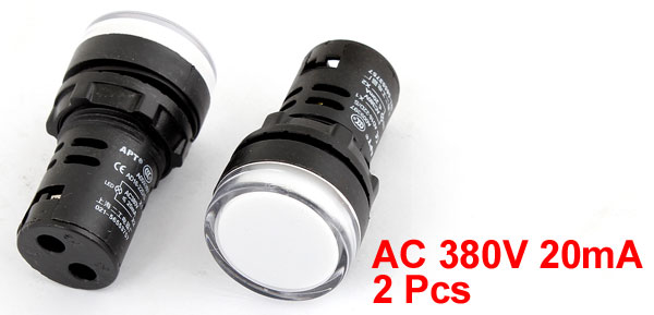 2 Pcs White LED Accident Electrical Indicator Pilot Light Lamp AC 380V 20mA