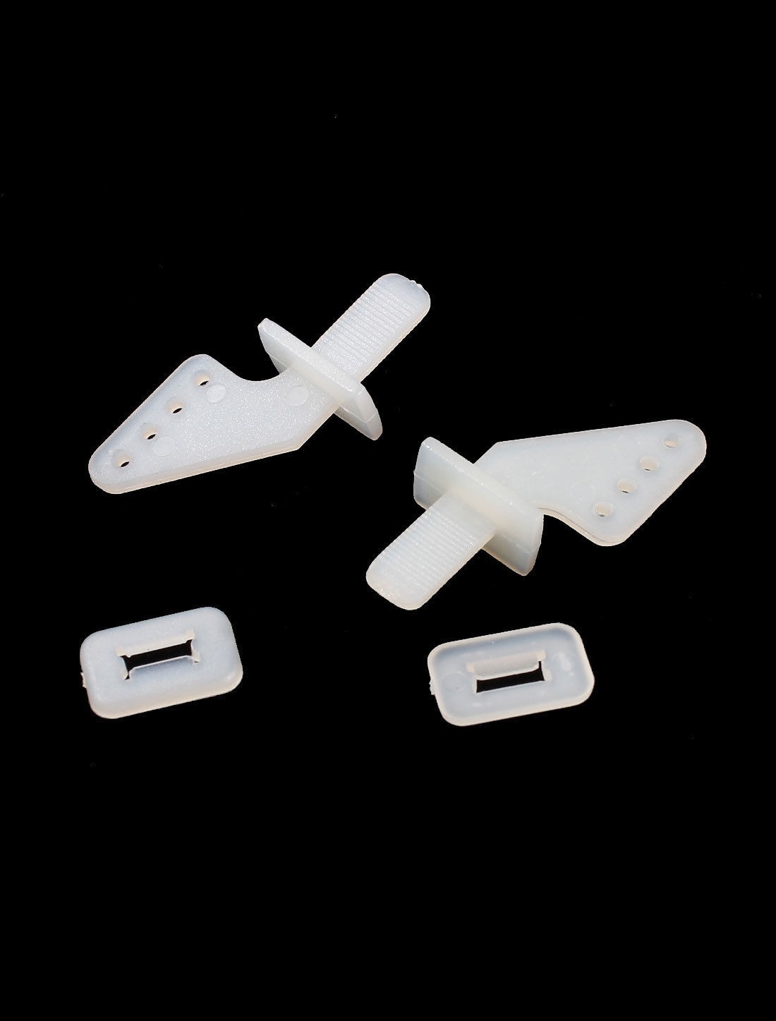 Product Name Control Horn Material Plastic Color White Size 12 x 8 x 30mm/ 0.47" x 0.31" x 1.18" (L*W*H) Holes Number 4 Weight 4g Package 2 Pcs x Control Horn
