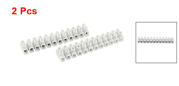 2 Pcs White Plastic Housing Double Row 12 Way Screw Terminal Block 450V 1.5A