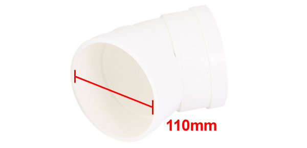 Product Name Pipe Connector Type 45 Degree Pipe Inner Dia. 110mm/ 3.9" Overall Size (Approx.) 18.5 x 12cm/ 7.3" x 4.7"(L*D)