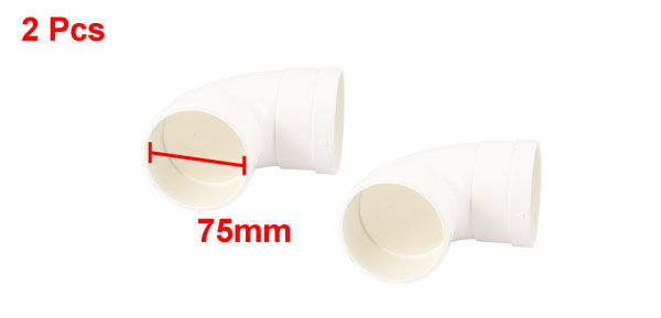 2 Pcs White PVC 75mm Inner Dia 90 Degree Design Pipe Tube Connector